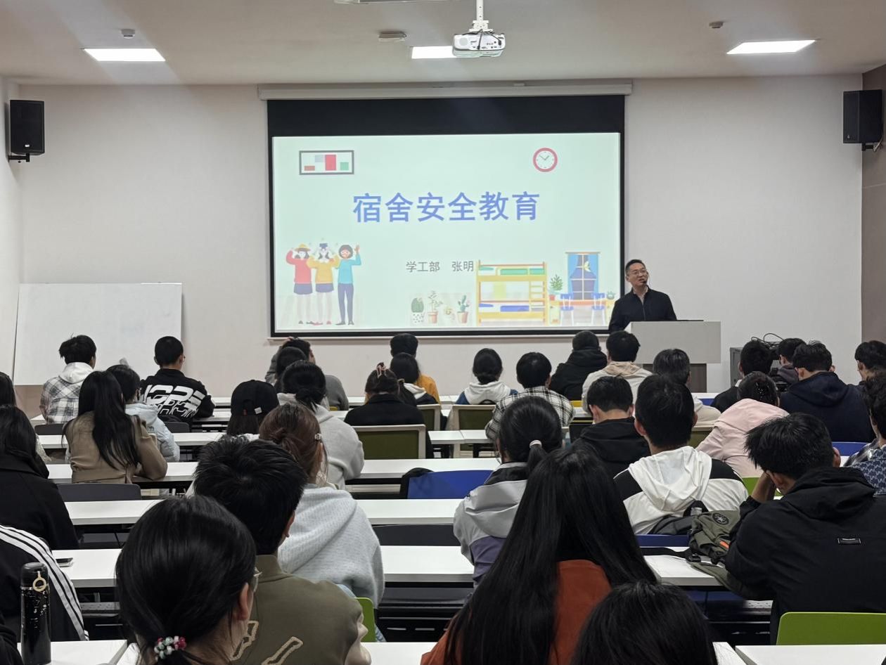 接下来,张明部长结合典型案例,从消防安全、人身与财产安全、设施安全、健康安全、关系安全、网络安全六个维度对学院全体宿舍信息员进行了详细培训。他指出,大学宿舍安全不仅是保障学生生命财产安全的基础,更是维护正常教学秩序、促进学生全面发展的关键环节。希望全体同学牢固树立安全意识,积极参与文明宿舍创建,共同营造"安全、文明、温馨、和谐"的宿舍文化氛围。