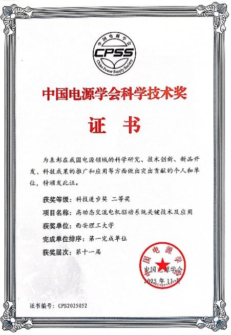 电气工程学院姬军鹏副教授主持的《大功率变频电源系统电磁干扰滤波关键技术及工程应用》项目、张延庆副教授主持的《高动态交流电机驱动系统关键技术及应用》项目荣获第十一届中国电源学会科学技术奖二等奖,共两项。