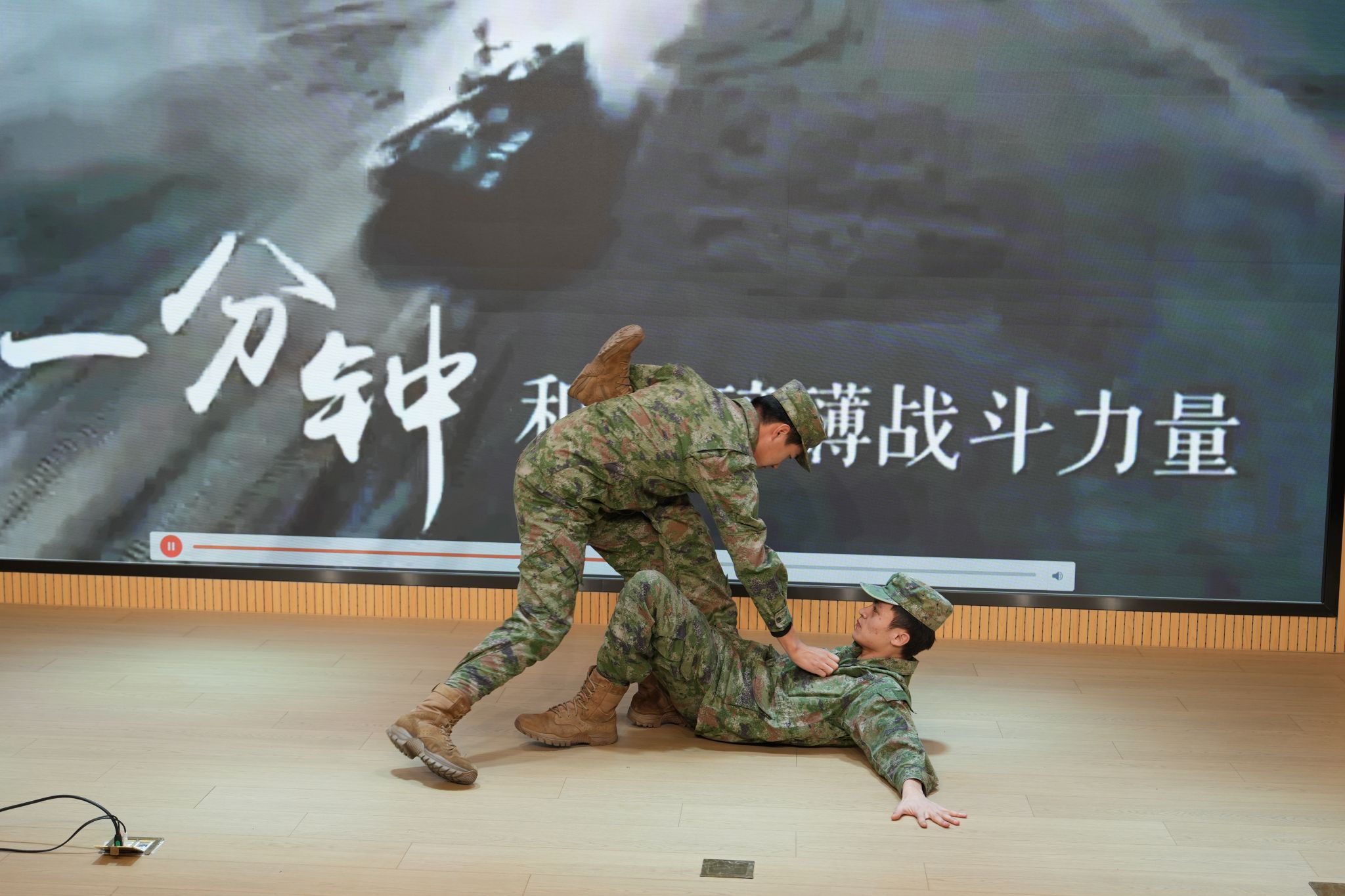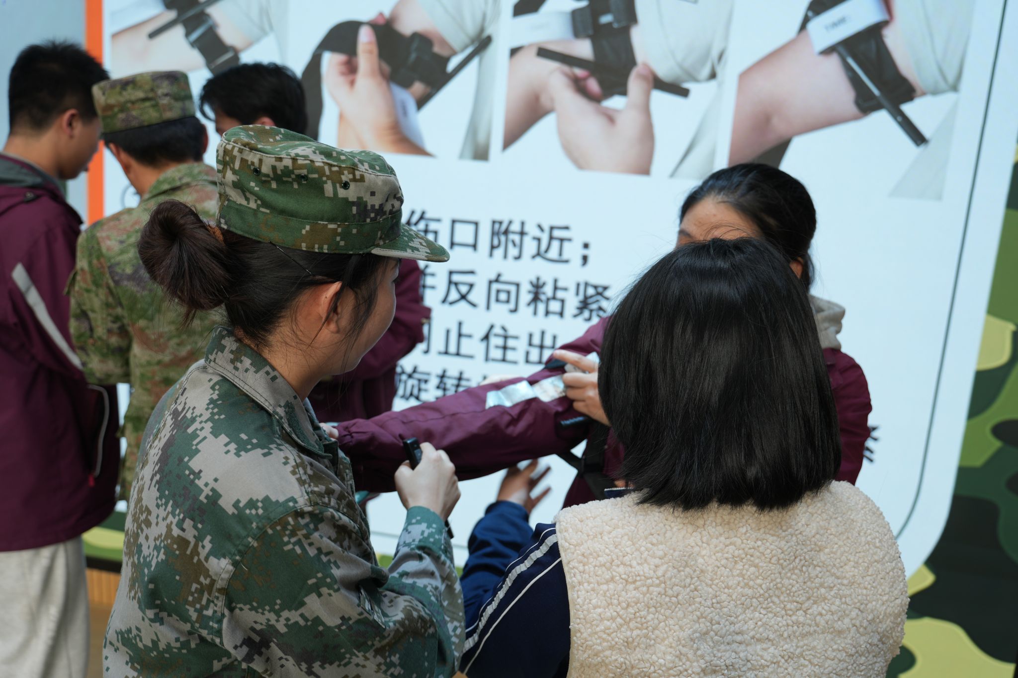 作为此次系列活动的亮点环节,来自学校不同学院的7名理工大学子,为西农附中高三同学呈现“国防润志燃青春 强国筑梦育菁英”主题特色表演。表演内容丰富多样,涵盖快板表演、红色宣讲、战术表演、救护演练四大板块。快板表演中,学子们以朗朗上口的节奏、生动鲜活的语言,讲述国防建设辉煌成就,传递青年爱国情怀;红色宣讲环节,结合革命先辈英雄事迹与新时代国防故事,引导高三学子厚植爱党爱国情怀,树立强国报国之志;战术表演中,学子们身着迷彩服,展示标准军事动作与整齐划一的战术配合,展现当代大学生昂扬风貌与责任担当;救护演练环节,详细演示应急救护基本流程与关键技巧,现场指导部分同学实操练习,帮助掌握实用救护知识。整场表演形式新颖、感染力强,既为高三学子缓解学习压力,更潜移默化培育国防意识与家国情怀。