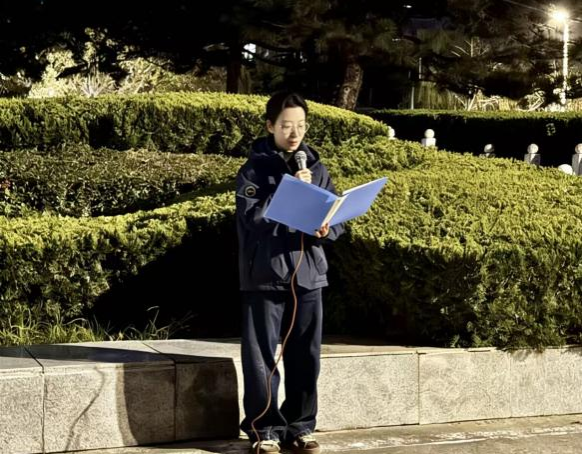 随后,电气256班叱干子清同学以“传承一二九,争做电气人”为题作国旗下演讲。她从纪念“一二·九”运动出发,号召学院2025级新生传承爱国担当的历史精神,将其转化为扎实学习、攻坚克难的实际行动,以专业学识与青春智慧投身强国建设。