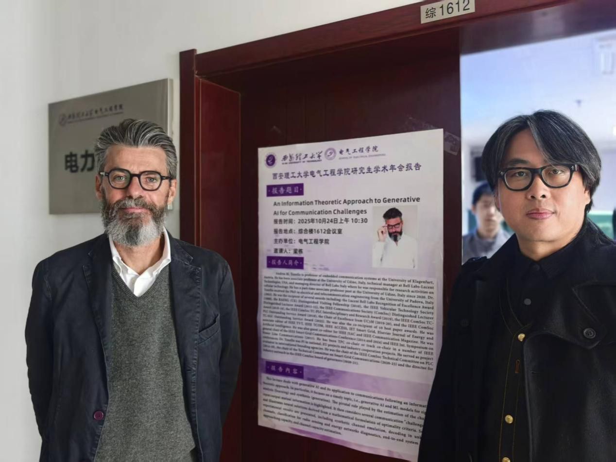 2025年10月24日上午,应西安理工大学电气工程学院梁栋老师邀请,奥地利克拉根福大学嵌入式通信系统领域知名专家Andrea M. Tonello教授访问我院,并在综合楼1612会议室举行学术讲座。电气工程学院部分教师及研究生代表参加了报告会,现场学术氛围浓厚。