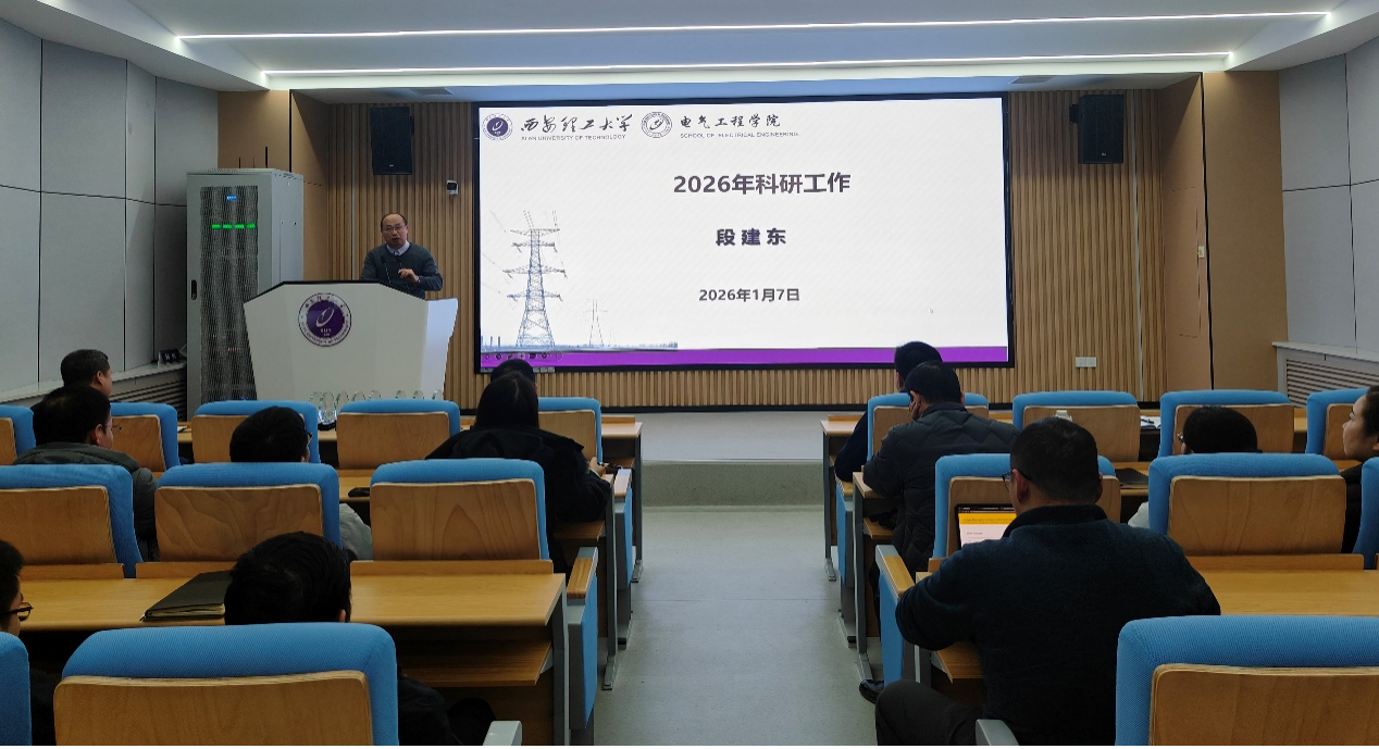为扎实推进2026年国家自然科学基金申报工作,我院1月7日下午在曲江校区综南楼119会议室召开了2026年国家自然科学基金申报工作中期推进会。学校科研院院长尹忠刚教授、学院院长贾嵘教授、各系(所)负责人及全院教职员工100余人参加了中期推进会。会上特别邀请了杨磊教授分享了国家基金申报经验和心得,中期推进会由副院长段建东教授主持。